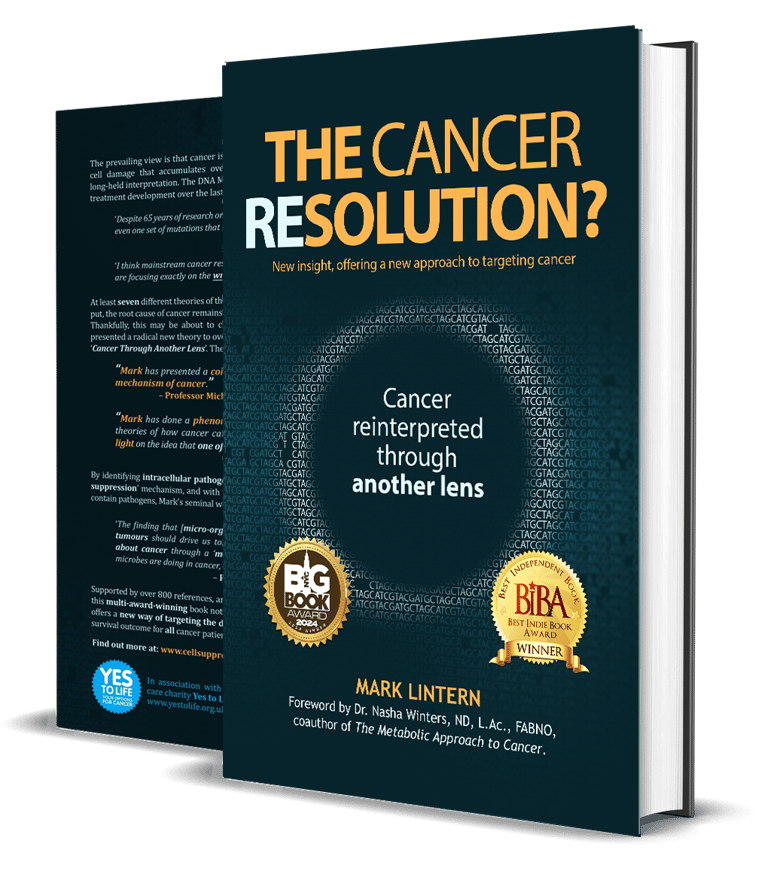 The information contained on this website and within the book 'The Cancer Resolution?' is not intended to be used as personal medical advice, instruction, or for treatment, it is purely for information purposes. This information is not an advertisement to sell treatment products, nor does the author guarantee that such information will lead to a cure. Any decision to implement treatment based upon the information presented is made at your own risk. The author and publisher are not liable for any harm you may incur that results from acting upon the information and evidence presented. It is not advisable to undertake any action affecting your health without consulting a qualified health professional. The author and publisher are not doctors, medically qualified or health care providers. As all current cancer theories – including the Somatic Mutation Theory that forms the basis of mainstream treatments – are currently unproven, it is imperative that any cancer patient consult a qualified medical practitioner, and acquire as much information as possible from multiple sources to ensure treatment decisions are as objective and informed as possible.